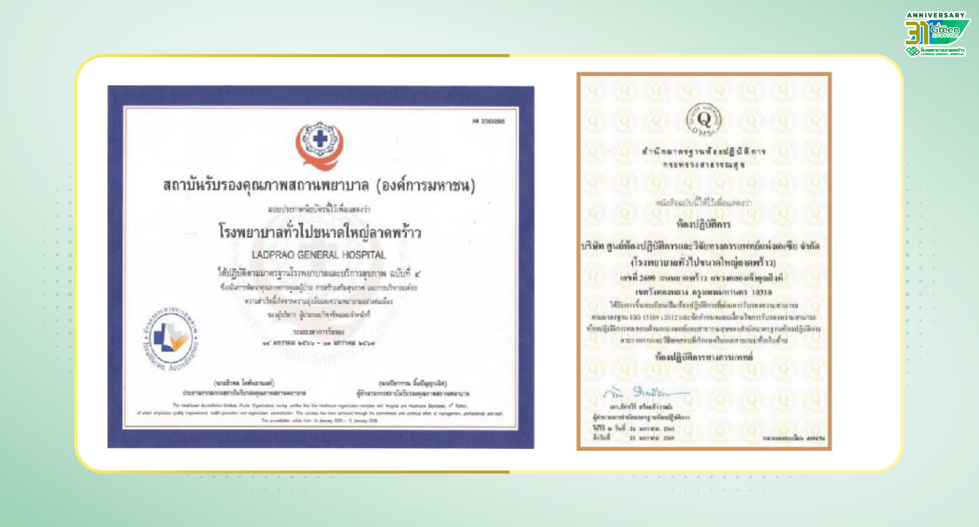 It is a hospital with a capacity of 180 beds. It was operated on February 14, 1992 until now, ready to provide services to respond to the needs of communities such as Wang Thonglang District, Lat Phrao District, Bang Kapi District, Bueng Kum District, with the determination of the Company's Kanomian Committee. , executives, employees, shareholders (want to provide quality, safe, high standard services). Therefore, Ladprao Hospital has developed continuously in order to receive certification from the Hospital Quality Accreditation Development Institute (HA) since Year 2003 until present.