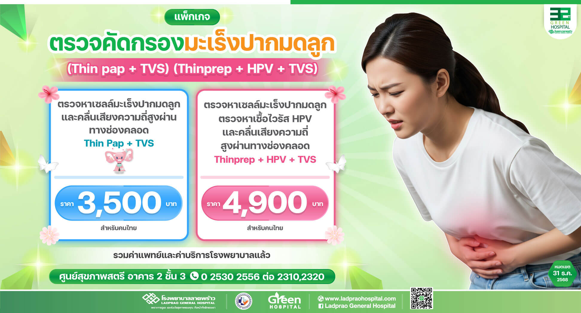 For more details, please contact the Women's Health Center, Building 2, 3rd Floor, Tel. 0 2530 2556 ext. 2310, 2320.
