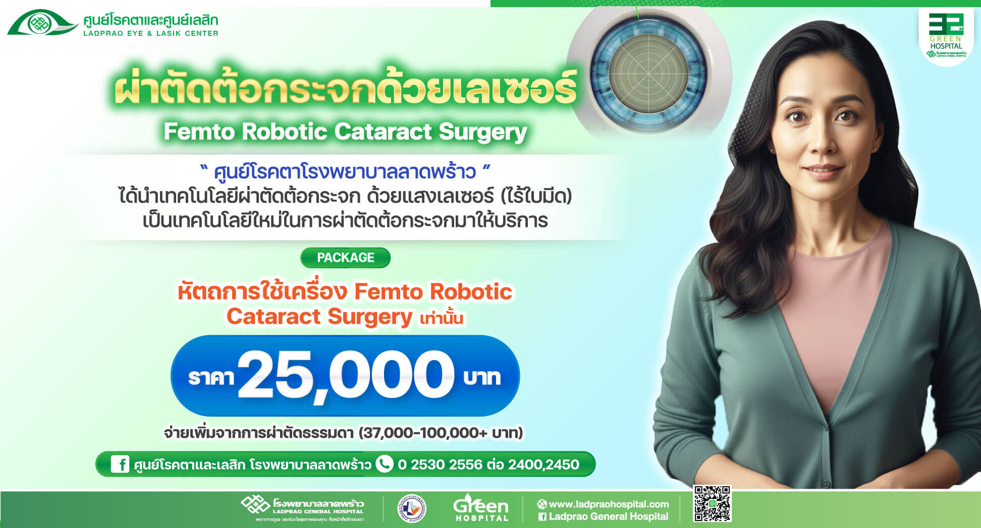 - he Eye Center at Lat Phrao Hospital is now offering cataract surgery using laser technology (bladeless), a new technology for cataract operations.