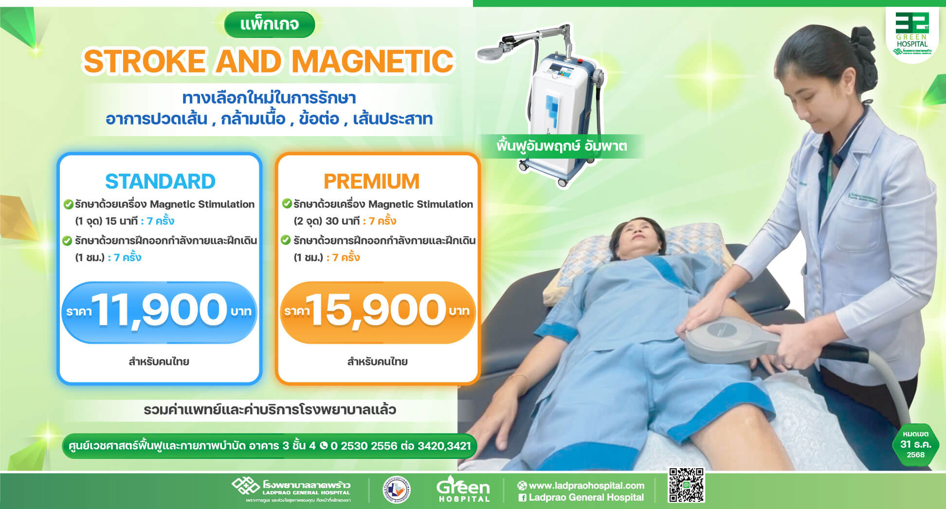 การใช้เครื่อง Peripheral Magnetic Stimulation (PMS) กับผู้ป่วย โรคหลอดเลือดสมอง (Stroke) เป็นเทคโนโลยีเสริมในกระบวนการฟื้นฟูสมรรถภาพ โดยเฉพาะในระยะฟื้นตัว (subacute หรือ chronic stage) ซึ่งช่วยกระตุ้นกล้ามเนื้อและระบบประสาทให้กลับมาทำงานได้ดีขึ้น