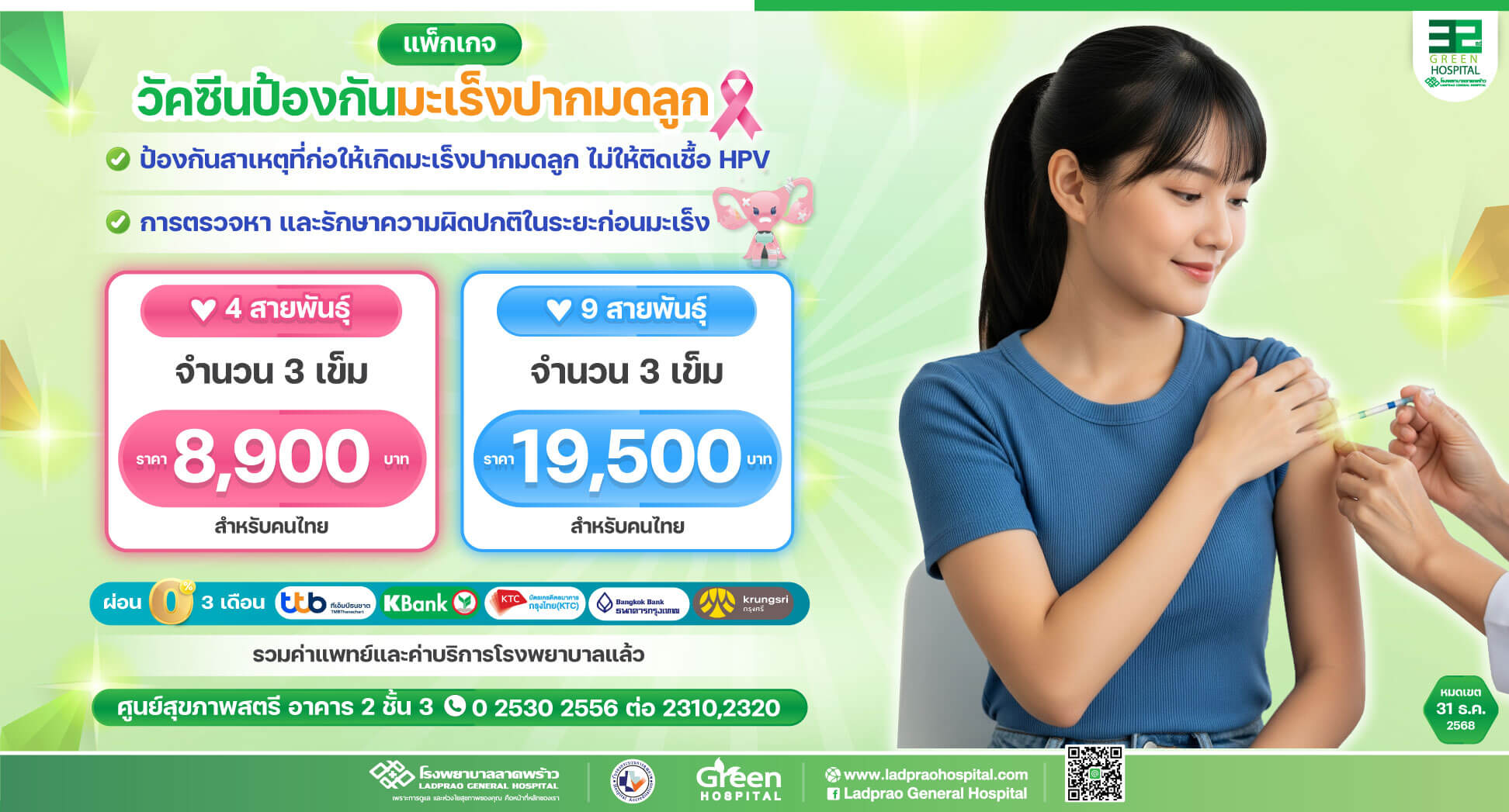 2 วัคซีนป้องกันมะเร็งปากมดลูก 9 สายพันธุ์ 3 เข็ม 19,500.